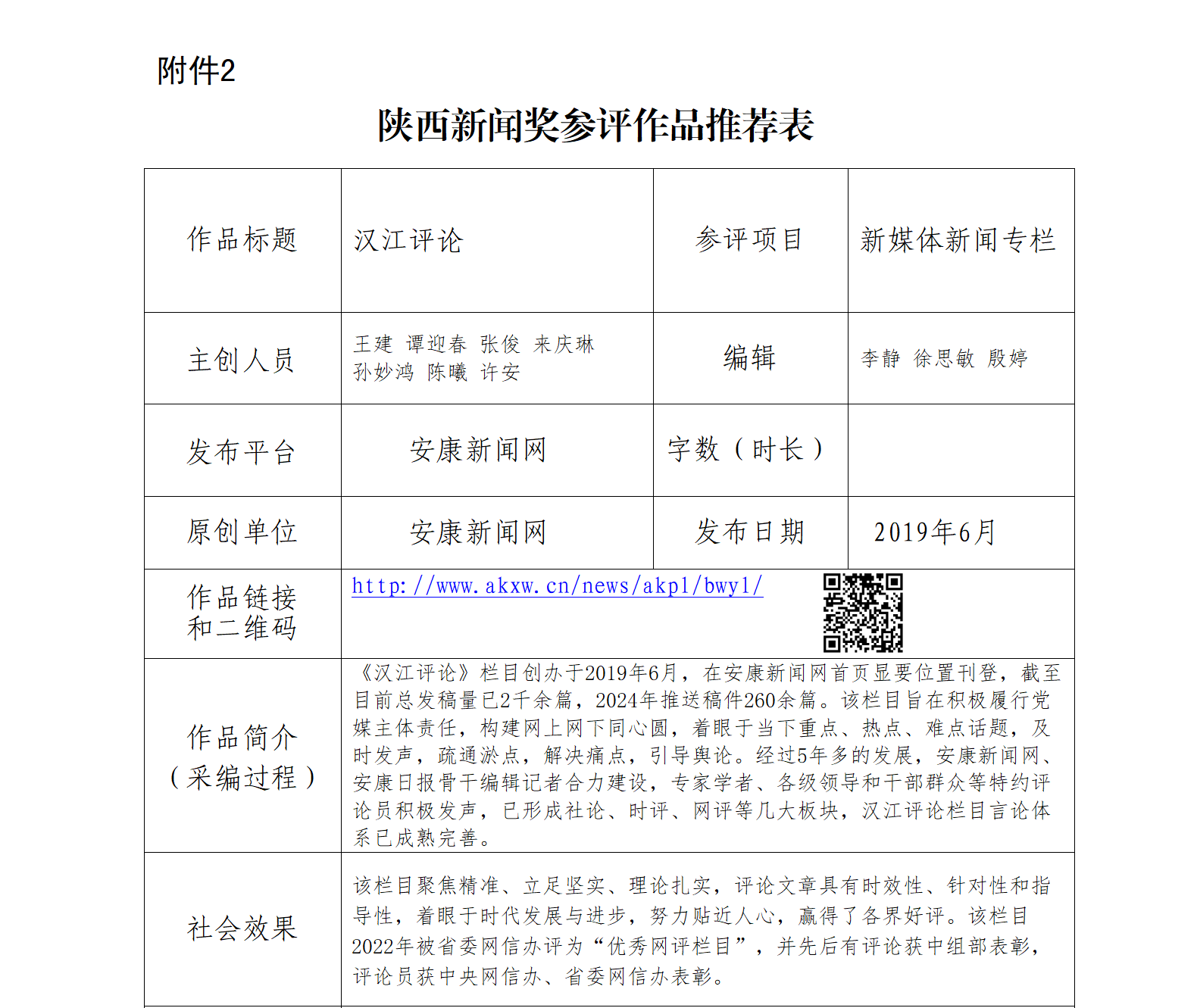 安康日報社參評“2024年度陜西新聞獎融合報道、應用創新和新媒體新聞專欄”作品公示