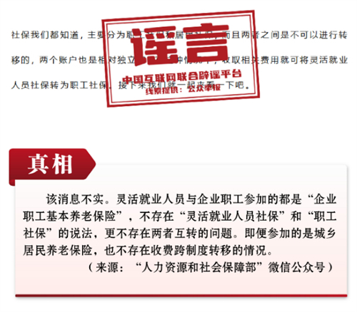 謠言1:收費可將靈活就業人員社保轉為職工社保?