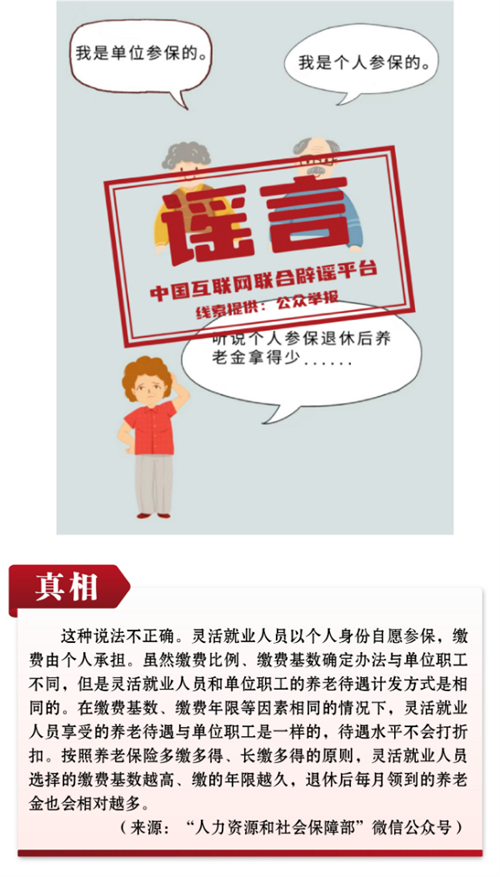 謠言4:以個(gè)人身份參保不如單位職工參保劃算?