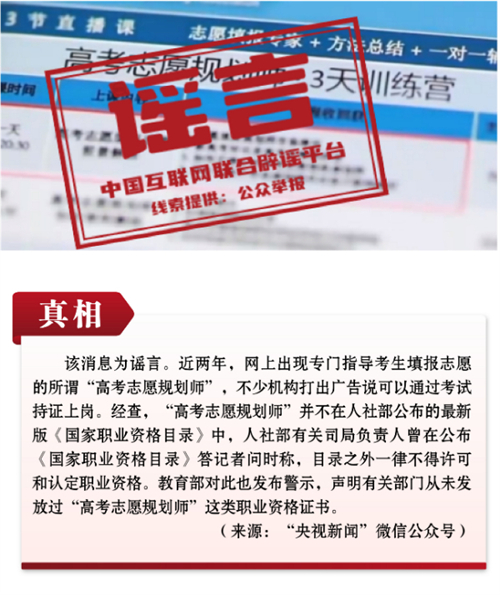謠言3:培訓(xùn)3天就能拿到“高考志愿規(guī)劃師”證書上崗?