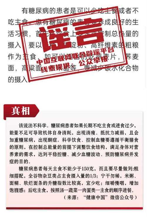 謠言10:糖尿病患者要少吃、不吃主食?
