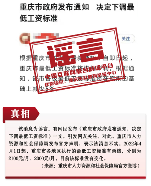 謠言5:重慶決定下調(diào)最低工資標準?