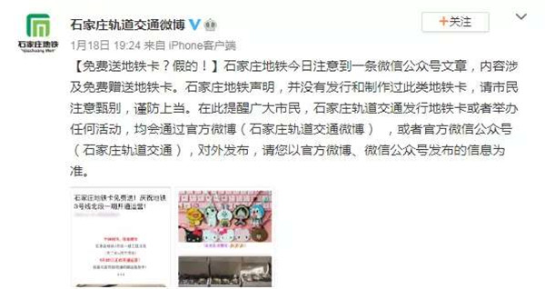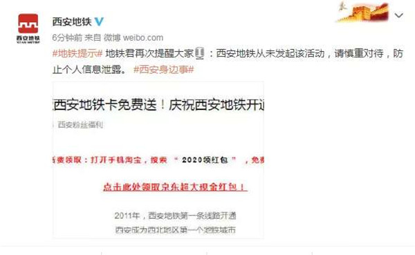 限量版西安地鐵卡免費送?謠言!很可能是騙子的詭計!