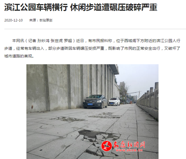 安康新聞網(wǎng)積極履行媒體輿論監(jiān)督職能,開設(shè)有“曝光臺”欄目,主要刊發(fā)市紀(jì)委通報的典型問題。2020年,聚焦民生問題,刊發(fā)了《出門停車難,回家車位貴——安康中心城區(qū)物業(yè)小區(qū)停車問題調(diào)查》《“限塑令”下,小小塑料袋緣何依然“橫行”?》《健康就餐:我市推行“分餐制”進展調(diào)查》《電動車充電,何時才能不“飛線”?》等一批原創(chuàng)新聞,反映群眾呼聲,積極推進問題解決,體現(xiàn)地方黨媒的責(zé)任與擔(dān)當(dāng)。