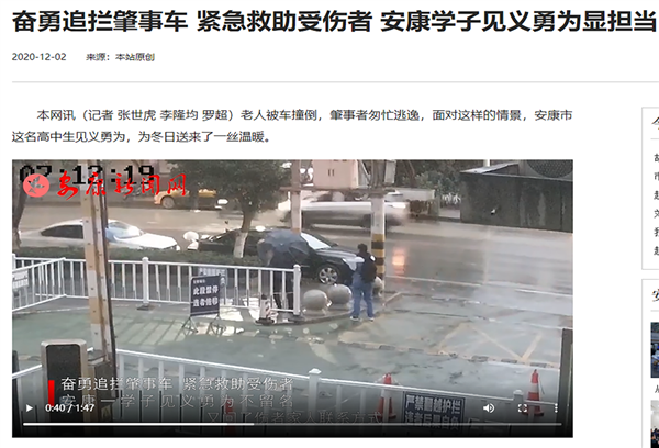 “石夢林”轟動全網(wǎng),傳播安康好形象。2020年12月,網(wǎng)站記者原創(chuàng)采寫石夢林見義勇為視頻報道,并在微信、網(wǎng)站、微博首發(fā),消息一經(jīng)發(fā)布,引發(fā)了中省市各級媒體的廣泛關(guān)注,人民日報、新華網(wǎng)、央視新聞、中央廣播電視總臺中國之聲等中央級媒體集中轉(zhuǎn)載報道,全網(wǎng)刷屏,最終“引爆”互聯(lián)網(wǎng)。據(jù)不完全統(tǒng)計,此次報道閱讀量過億次,安康新聞網(wǎng)首個“全網(wǎng)刷屏”的原創(chuàng)報道,創(chuàng)造了網(wǎng)站歷史,安康地域品牌也隨著全網(wǎng)“飄紅”。安康乃至陜西的新民風(fēng),以及青少年德育工作,和安康的形象得到全網(wǎng)肯定。