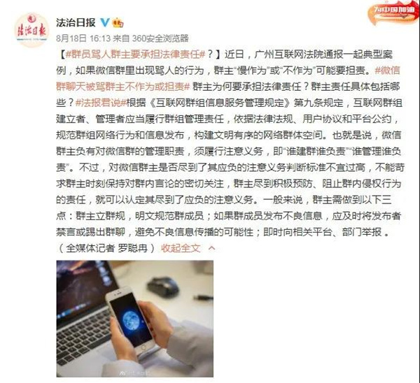 日前,廣州互聯網法院通報一起典型案例,如果微信群里出現罵人的行為,群主“慢作為”或“不作為”可能要擔責。DF7安康新聞網