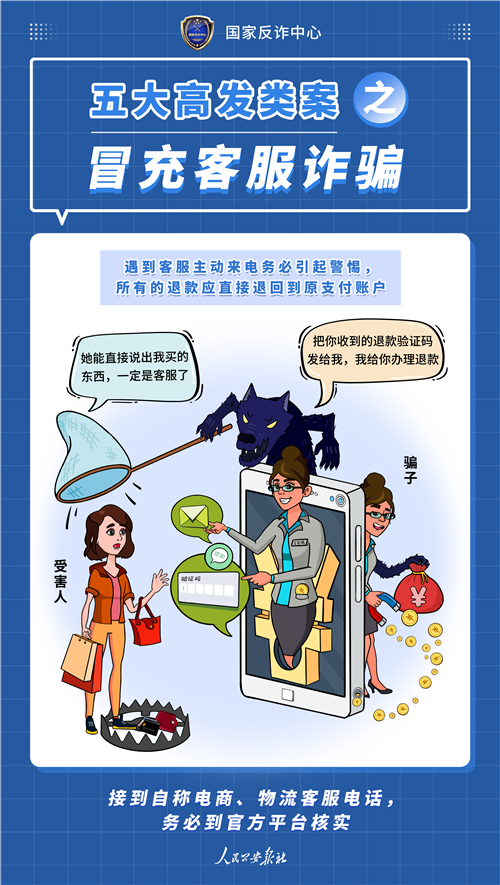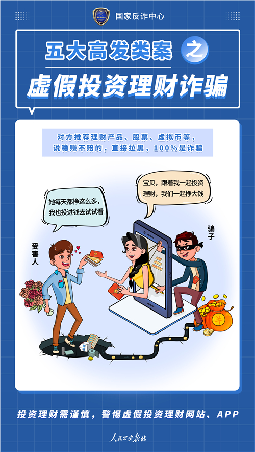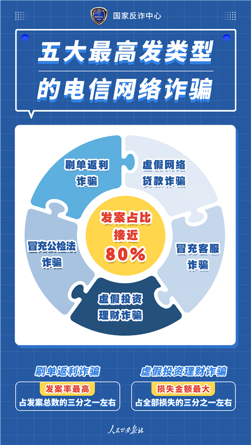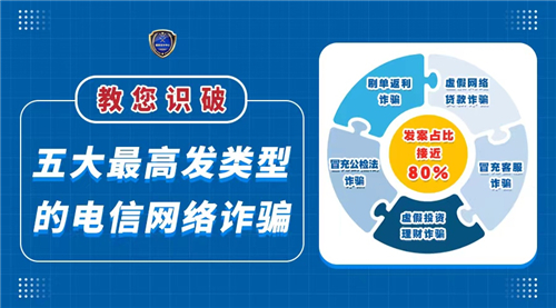 五大最高發(fā)類(lèi)型的電信網(wǎng)絡(luò)詐騙海報(bào)