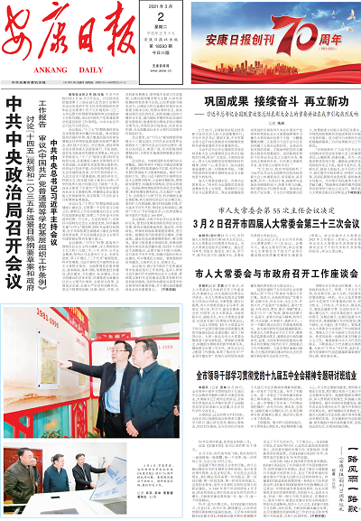 2021年是中國共產(chǎn)黨建黨100周年,是“十四五”規(guī)劃開局之年,是開啟全面建設(shè)社會(huì)主義現(xiàn)代化國家新征程、向第二個(gè)百年奮斗目標(biāo)進(jìn)軍之年。站在兩個(gè)一百年的歷史交匯處,又恰逢《安康日?qǐng)?bào)》創(chuàng)刊70周年,安康日?qǐng)?bào)全媒體站位主動(dòng),守正創(chuàng)新,積極發(fā)揮黨媒應(yīng)有的作為。