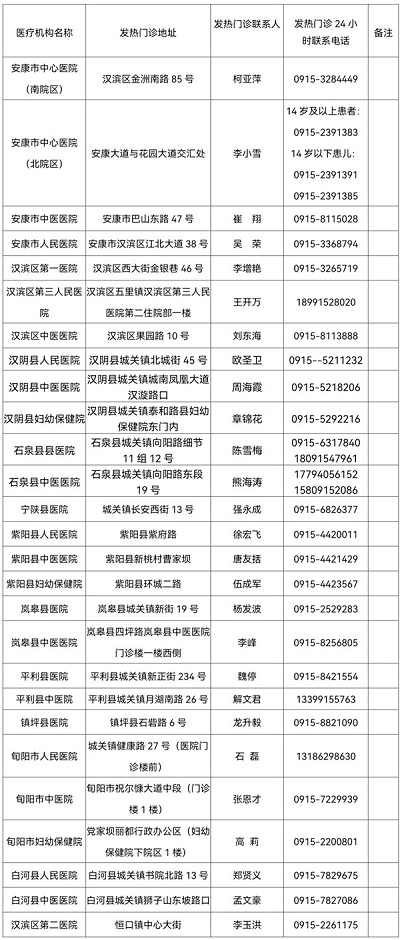我市二級以上醫療機構發熱門診公開信息