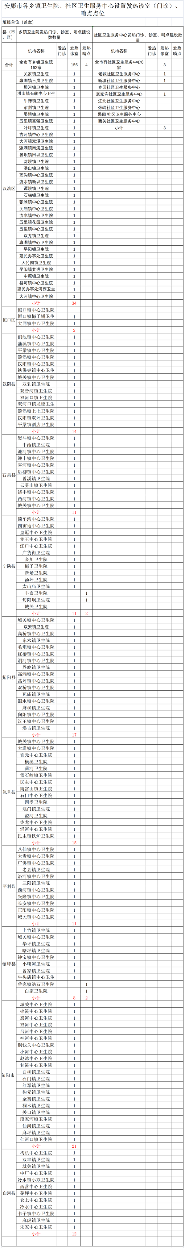 安康市各鄉(xiāng)鎮(zhèn)衛(wèi)生院、社區(qū)衛(wèi)生服務(wù)中心設(shè)置發(fā)熱診室(門診)、哨點點位