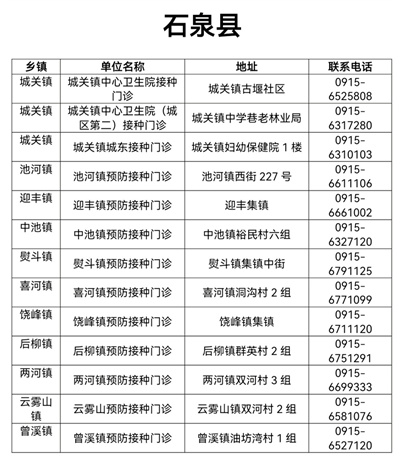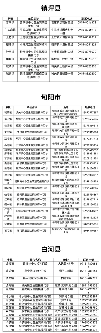 答:目前安康各鄉鎮、社區預防接種門診均可接種新冠疫苗,具體接種點位附后。