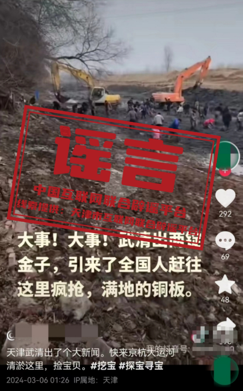 謠言:天津武清北運河城區段清淤挖出寶?
