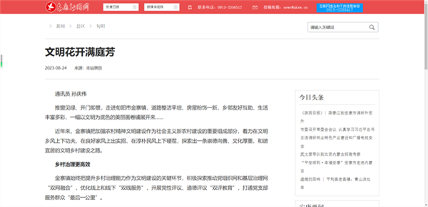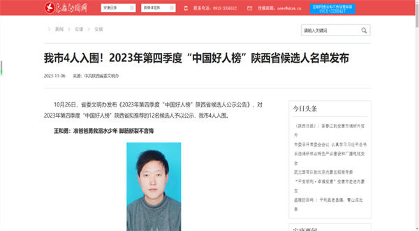 安康新聞網始終堅持傳達正確立場、觀點、態度,持續做好正能量典型宣傳,做有態度、有溫度的新聞精品,發布如《嵐皋:百歲老人的別樣生日》《紅色革命歷史題材漢調二黃劇〈激戰牛蹄嶺〉成功首演》《傳承紅色基因培育時代新人——近五年安康市少先隊工作綜述》《紅色沃土培育燦爛奪目的紅色文化——寧陜縣賡續紅色血脈弘揚紅色文化工作回望》等優質稿件。