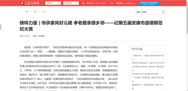 堅持以人為本報道理念,充分凸顯人文精神。報道《榜樣力量|傳承家風好兒媳孝老愛親感鄉鄰——記第五屆安康市道德模范紀大英》《我市3人上榜!2023年第四季度“陜西好人榜”發布》《王淳鋒:腳下沾著泥土心里揣著群眾》《趙光鮮:立足崗位謀發展巾幗創業勇擔當》等,啟迪思想,溫潤心靈,詮釋真善美。