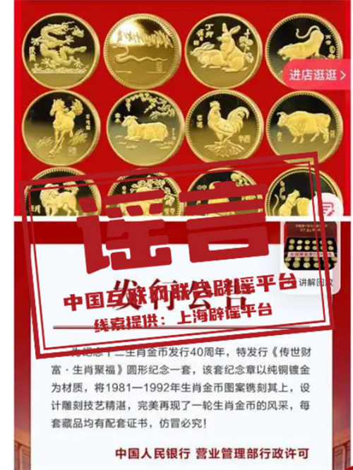 真相:“為紀念十二生肖金幣發行40周年,特發行《傳世財富·生肖聚福》圓形紀念章一套”“一次性收齊央行十二生肖紀念幣”……直播間里的各種“紀念幣”,有的甚至帶有“央行發行公告”等“紅頭文件”,讓人真假難辨。經上海網信部門調查發現,上述網傳商品與央行發行的紀念幣有著天壤之別。很多商家故意混淆“紀念章”與“紀念幣”、“央行圖樣許可”與“央行發行”的區別,誤導公眾。事實上,“紀念幣”由央行發行,分為普通紀念幣與貴金屬紀念幣,“紀念章”則是商家自行設計制造的,與央行沒有關系;而“圖樣行政許可”只是表示央行同意相關單位在產品上使用人民幣圖樣,并不代表產品由央行發行。對公眾來說,想要分辨是“央行發行”還是“商家生產”,一是可以通過央行官網查看每年發行的普通紀念幣和貴金屬紀念幣項目;二是看紀念幣或紀念鈔是否有面額和貨幣單位,其中貨幣單位為“元”。(來源:“上海網絡辟謠”微信公眾號)vbN安康新聞網
