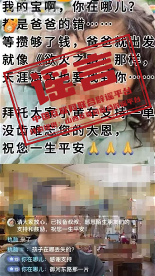 真相:近日,一山西網民先后發布4條“尋娃”視頻,聲稱自己4歲的女兒不慎走失,引發網民關注。經當地網信部門核實,該信息系謠言。近期該轄區內并未發生兒童走失案件,視頻所展示的“走丟孩子”照片是網民高某某為博取關注,利用AI技術生成的虛假圖像。目前,當地警方已對高某某虛構事實、擾亂公共秩序等行為做出治安拘留處罰。(來源:“網信山西”微信公眾號)5YX安康新聞網