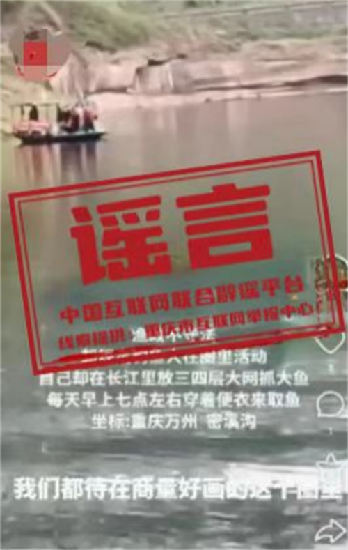 真相:近日,有網民發布視頻稱“重慶萬州漁政人員知法犯法,在長江里放網抓魚”,引發關注。經當地網信部門核實,該信息為謠言。網傳視頻由兩方面內容拼接而成,一張是漁政執法人員乘執法艇日常巡航的畫面,另一張是人員駕駛船舶正實施捕撈行為的畫面,其中的捕撈行為系重慶三峽職業學院實施的科研調查專項捕撈。該專項捕撈于2023年12月經重慶市農業農村委批準,捕撈及監測過程中均有漁政執法人員現場監管,并全過程記錄,未發現存在違法違規行為。(來源:“重慶辟謠”微信公眾號)5YX安康新聞網