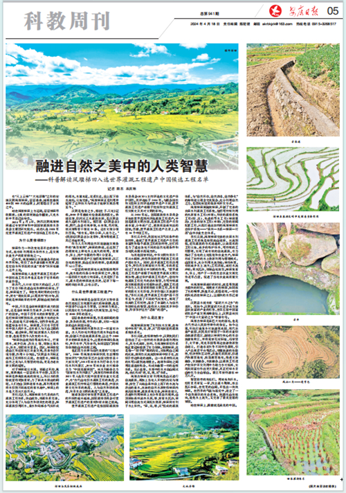 (2024年4月18日安康日報05版“融進自然之美中的人類智慧——科普解讀鳳堰梯田入選世界灌溉工程遺產中國候選工程名單”)