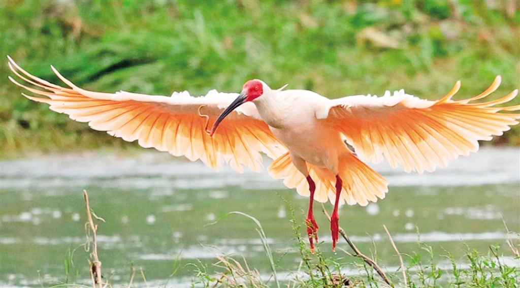 羽毛主要是白色,嘴黑而彎曲,臉和嘴基紅色,翅膀和尾巴粉紅色,腳短且紅色。幼鳥頰部橙黃,腳淺褐色,羽毛呈煙灰色,被譽(yù)為“東方寶石”和“吉祥之鳥”。(來(lái)源:安康市林學(xué)會(huì))jtN安康新聞網(wǎng)