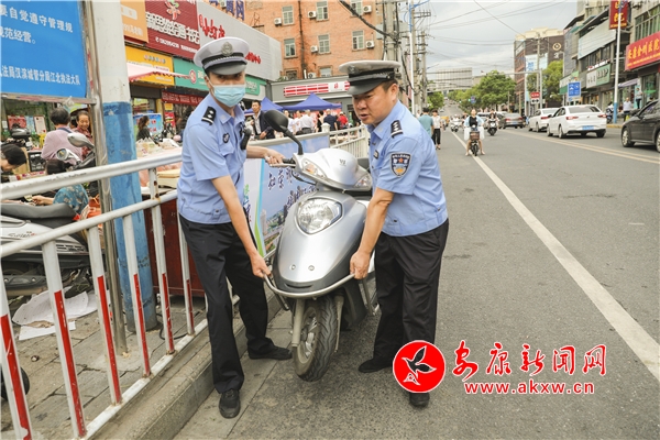 7月27日,江北交警、志愿者服務(wù)隊(duì)對中渡街交通和市容進(jìn)行治理。(郭曉康)