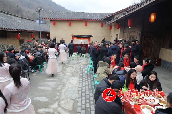▲ 嵐皋縣城關鎮城北社區開展“粥到暖人心、濃情臘八節”主題活動。現場設置長桌宴,大家歡聚一堂嘮家常。張弛 攝MSL安康新聞網