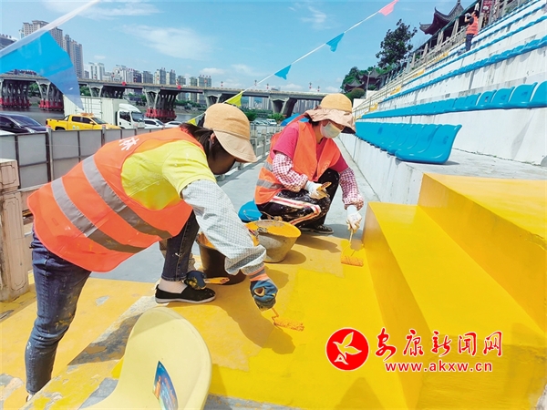 工人正在給看臺刷漆8wd安康新聞網