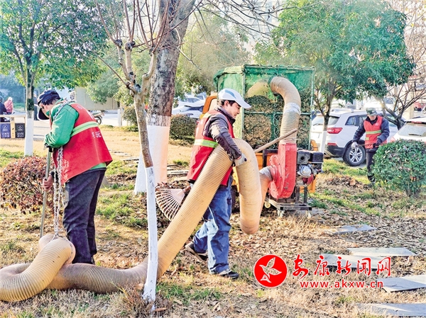 為迎接新年,2024年12月30日下午,漢濱環衛工人在街心公園清理落葉雜草,扮靚城市。尚玉寶 攝Fwj安康新聞網