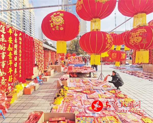 商販在中心廣場售賣春聯、福字、紅燈籠等節慶用品。吳定國 攝Su2安康新聞網