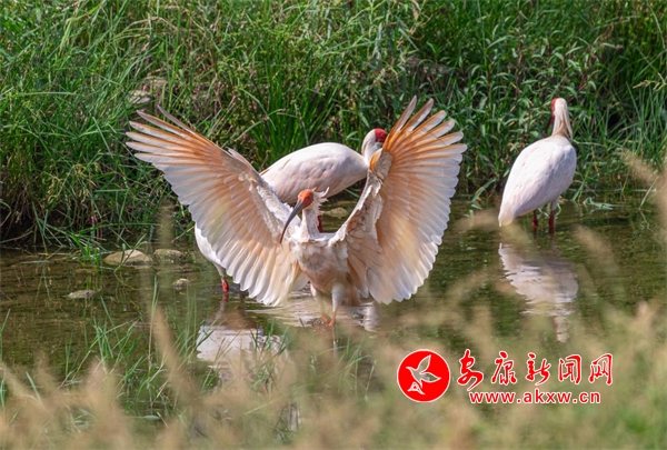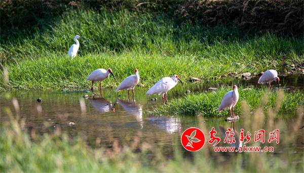 眼下,在漢陰縣,隨處可見朱鹮靚麗的身影,在秋色斑斕、山清水秀的月河河畔,經常有攝影愛好者拍到朱鹮在河畔盡情嬉戲、玩耍、覓食,已成為漢陰一抹靚麗的風景線。(通訊員 王建霞 尹正軍) bEK安康新聞網
