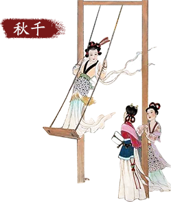 這是中國古代清明節習俗。五代王仁裕《開元天寶遺事》載“天寶宮中至寒食節竟豎秋千,令宮嬪輩戲笑以為宴樂。帝呼為半仙之戲,都中士民因而呼之”,宋代宰相文彥博詩《寒食日過龍門》,詩中描寫為 “橋邊楊柳垂青線,林立秋千掛彩繩。”秋千,意即揪著皮繩而遷移。它的歷史很古老,最早叫千秋,后為了避忌諱,改之為秋千。古時的秋千多用樹椏枝為架,再拴上彩帶做成。后來逐步發展為用兩根繩索加上踏板的秋千。蕩秋千不僅可以增進健康,而且可以培養勇敢精神,至今為人們特別是兒童所喜愛。