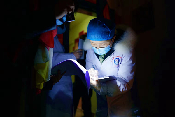 • 白河縣醫院醫護人員對入院就診人員進行體溫監測。