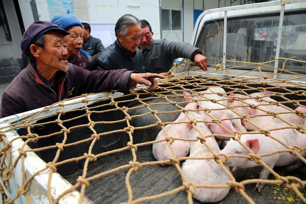 3月7日,花石村的貧困戶正在領(lǐng)取免費豬仔安康新聞網(wǎng)訊(通訊員 楊寧)“今年開年后,鎮(zhèn)上和部門的干部多次來我家。先是到我家來了解情況,春節(jié)還給我們送來了米……