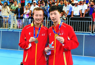 在今天結束的第十三屆全運會乒乓球比賽中,兩人分獲男、女單打冠軍,為北京代表團再添兩金。作為“大滿貫”得主,盡管馬龍和丁寧已在大小比賽中收獲榮譽無數,但他們從未放松過對自己的嚴格要求。在金牌背后,是常人難以看到的自律和自強;比金牌更重要的,是內心一直對勝利的渴望。這就是競技體育帶給人的超越金牌的感動。