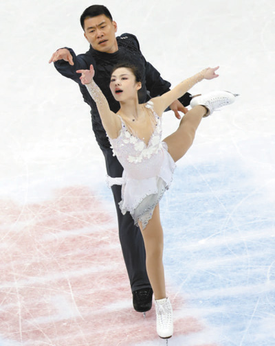 2017年3月30日,于小雨(右)/張昊在花滑世錦賽雙人滑自由滑比賽中。新華社記者 劉力航攝