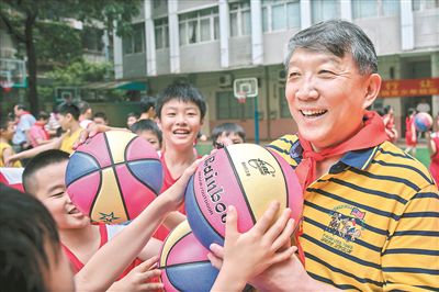 中國籃協(xié)副主席、前中國男籃主帥宮魯鳴日前應(yīng)邀來到廣州,先后在東風(fēng)西路小學(xué)和廣州鐵一中學(xué)與學(xué)生進(jìn)行交流,傳授寶貴的籃球經(jīng)驗(yàn)。