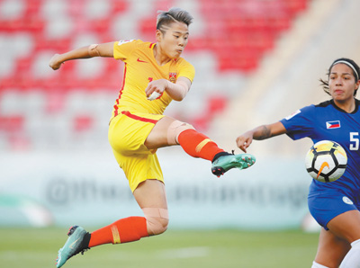 首戰以4∶0擊敗小組最強大的對手泰國女足,次輪以3∶0戰勝首輪獲勝的菲律賓女足,“鏗鏘玫瑰”的兩場比賽拒絕了任何冷門的發生。與對陣泰國女足時上半場顆粒無收相比,中國女足在北京時間4月9日晚對陣菲律賓女足的第二輪小組賽中早早取得領先,奠定勝局。兩場比賽中,邊鋒宋端和前鋒李影分別梅開二度,狀態上佳!拔覀兿胱C明中國女足依然屬于亞洲頂級球隊,我們來這里是為了那塊分量最重的獎牌!瘪R君的話與她對陣菲律賓女足時的破門同樣霸氣。