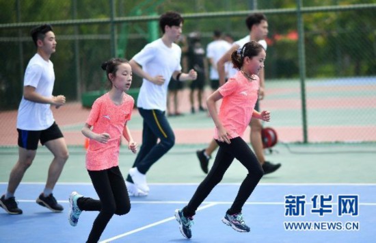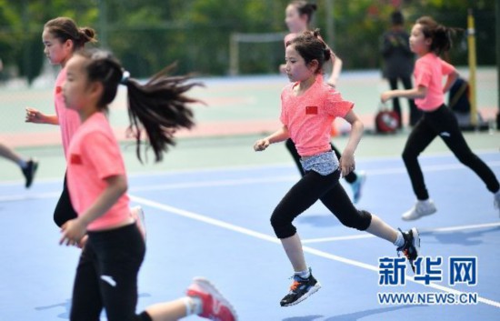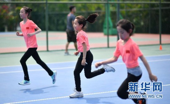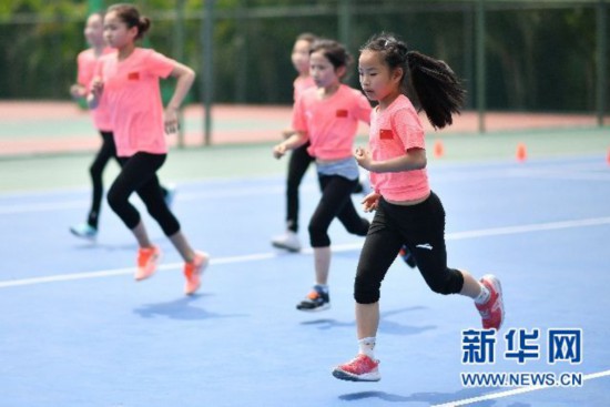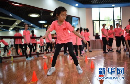 ↑小運動員們參加體能測試。新華社記者郭程攝
