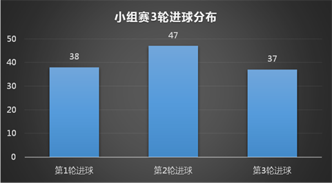 本屆世界杯小組賽共打入了122粒進球,場均2.54粒入球,三輪的進球分別是:38、47、37。顯然,小組賽的第2輪成為小組出線的關鍵性戰役,打入了3輪中最多進球,而“各懷鬼胎”的第3輪,各隊顯得“無心戀戰”。