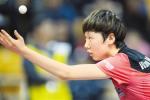 王曼昱在比賽中發球。