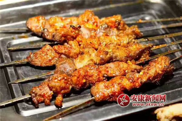 “擼串”是安康人小聚的常備,麻油配辣醬,加之各種蔬菜、肉類的串串,一根根竹簽便將美味送到了我們嘴邊。