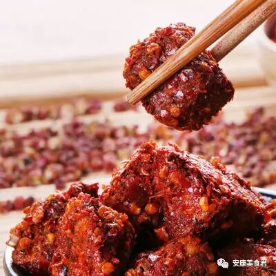 安康,一般這里的人只接受紅腐乳,(因為白腐乳和青腐乳還是很臭的),每個縣區都有自己做豆腐乳的絕招,也有每個縣的特色,有的地方認為豆腐乳越臭越好吃,有的則覺得辣的好吃,甚至有的直接帶毛吃(此處一會給具體解釋)。