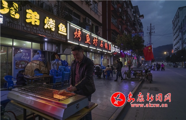 一座城市的溫度不僅是那矗立的山、靜深的水,更有煙火和人心。燈光球場(chǎng)散落的霓虹,文化路口推車的小販,夜燈下石泉烤魚(yú)的招牌,共同勾勒出石泉每一個(gè)最難將息的夜晚。
