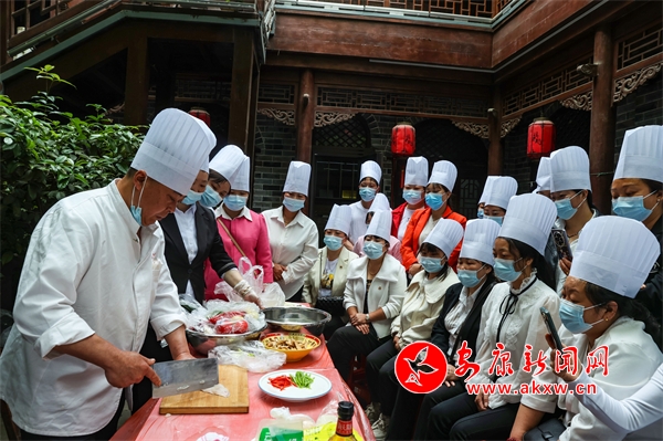 但隨著時代的發展,人們消費理念的更新,能制作傳統白河“三點水”宴席的人越來越少,偌大一個縣,找不出幾個能夠獨當一面制作傳統宴席白河“三點水”的廚師。所以他毅然決定辭去高薪的主廚工作,奔走于鄉村,上門做家政服務,在實地操作技藝中傳幫帶一批會制作白河“三點水”宴席的鄉廚。