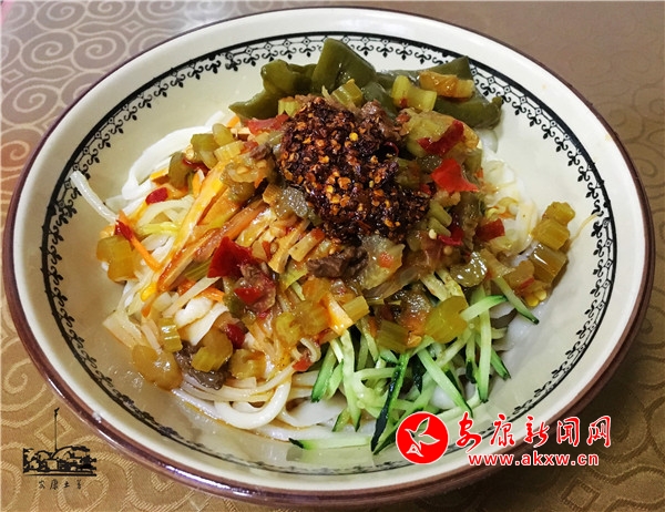 安康人對酸菜面可謂情有獨鐘,一碗手工搟面配上酸菜,澆入紅艷艷的油潑辣子,夏天吃生津解渴,冬天吃驅寒暖胃,喝完酸菜湯出一身汗更是渾身通透。“三天不吃酸,……