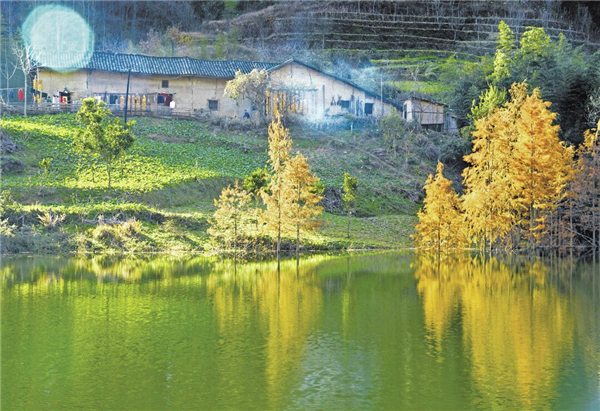 在水中,一條油潤潤的小路,融匯了大地的物語,春雨的澆注,還有輕輕觸碰就會變幻的神秘。道路的兩邊,是造型夸張要滴出翠來的植物,阻擋了行人的腳步,牽絆了路人的衣服,會給那些衣服沾染上艷麗的花粉,在深夜里都會散發出一股醉人的清氣,仿佛有什么該想而未想,心里蘊滿了不能為人道皎潔的白月光。沿著那條路,就是在水中宛若樓臺亭閣一般的房屋,黑瓦房、白墻壁,杏花、桃花、茉莉花爭相簇擁,房子便如置身其中的嬰兒了。還有小奶狗在屋前悠閑地打盹,太陽直射下來,貓也走來湊湊熱鬧,貓的眼睛碧藍澄澈,仿佛天使之瞳,總是帶著先知或者驚異審視的表情……而與此相對的,就是炊煙了,唯有炊煙將我們拉回世俗庸常之中,飯菜的香氣,去年果木熏的臘肉,農家自己釀的一碗包谷燒,啊,真想喝點小酒,酒的美妙不在于入口的辛辣,而在于微醺之時,那種難以控制的快樂!古來圣賢皆寂寞,唯有飲者留其名,明天的事,明天再說吧!