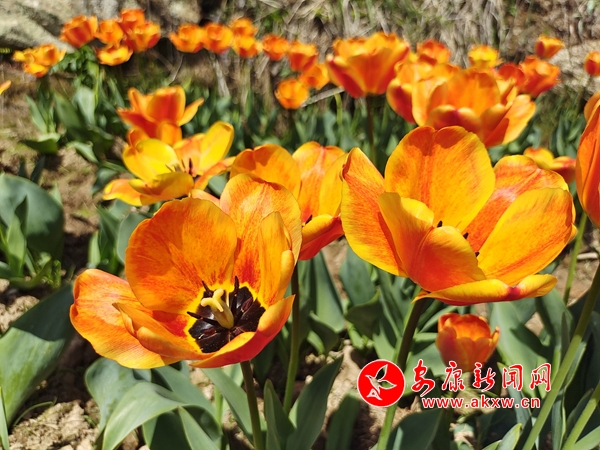 從遠處望去,郁金香整整齊齊地排列著,陣陣微風吹過,搖曳生姿。湊近看,郁金香花一朵挨著一朵,花瓣重疊,鮮艷得像要滴出水來。時不時還有幾只蝴蝶蜜蜂縈繞在花間,享受著春天帶來的絲絲甜蜜。在暖陽的照耀下,盛開的花朵隨春風搖曳,不同顏色、不同品種的郁金香呈現出了極佳的視覺效果,花叢中,游客三五結伴,賞花、拍照,享受繁花繞膝之美。