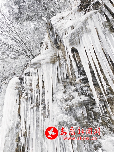 嶙峋的怪石、陡峭的崖壁,都被厚厚的積雪所覆蓋,冰凌從巖石上垂落,長短不一,粗細各異,有的尖銳如劍,有的靈動如晶,為這寒冷的世界增添了一抹亮麗的色彩。偶爾能聽到冰層下傳來的微弱流水聲,似是大地深處傳來的幽咽,訴說著對春的渴望與期待。