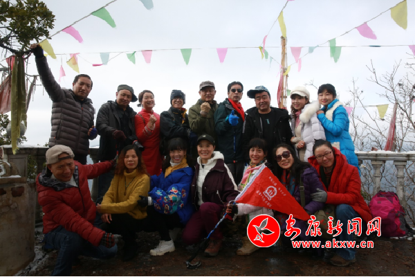 車輪嘎止在藺河鎮蔣家關村,徒步2小時就到了山頂。路上,看見雪的“不速來客”,興奮異常,女驢友五顏六色,黃鸝婉聲,剎那撕碎了荒野的沉寂,男驢友長槍短炮,咔擦記錄著久違的驚奇……平坦的山脊,突兀一座孤峰,高若數丈,菱角如線,層次分明,絕壁如刀砍斧劈般,無路,懸空木梯,幾乎呈直角狀,弓腰獨身才能爬上去,這個地方叫香爐寺。凌空飛石,古木蒼天,的確神似幾分梵凈山。H5q安康新聞網