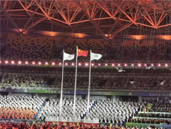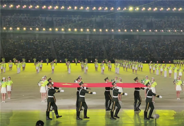 隨后,五星紅旗冉冉升起,6萬(wàn)人齊聲唱國(guó)歌。“起來(lái),不愿做奴隸的人們,把我們的血肉,筑成我們新的長(zhǎng)城……”當(dāng)這首從小根植在我們腦海中的歌曲在奧體中心上空飄揚(yáng),場(chǎng)面十分壯觀,這一刻我不禁熱淚盈眶!第一次參加如此壯觀的升旗儀式,第一次近距離參加如此龐大的體育盛會(huì),內(nèi)心頃刻間升騰起無(wú)比強(qiáng)大的民族自豪感,真切感受到祖國(guó)的繁榮強(qiáng)大、團(tuán)結(jié)富強(qiáng),越發(fā)覺(jué)得我們能夠生在長(zhǎng)在偉大的中國(guó),是多么自豪、多么驕傲!能夠生活在這個(gè)繁榮昌盛的時(shí)代,是多么幸運(yùn)、多么幸福!