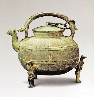 東漢許慎在《說文解字》里有言:“盉,調(diào)味也。從皿,禾聲。” 王國維在《說盉》中言:“余謂盉者,蓋和水于酒之器,所以節(jié)酒之厚薄也。”可見盉是古代酒器,是用來調(diào)和米酒,加水來沖兌酒味濃淡的。從考古發(fā)現(xiàn)看,多分布于山西、陜西、河南、江蘇、安徽等地,尤以江淮地區(qū)分布最多。西周中期以后,盉常與盤共出,說明盉的功能有所轉(zhuǎn)變,從酒器變?yōu)樗鳎徽撟鳛榫破鬟是水器,“盉”與人們的日常生活總是密切相關(guān),它是“茶壺”的鼻祖,現(xiàn)代用的茶壺即是由它發(fā)展而來。